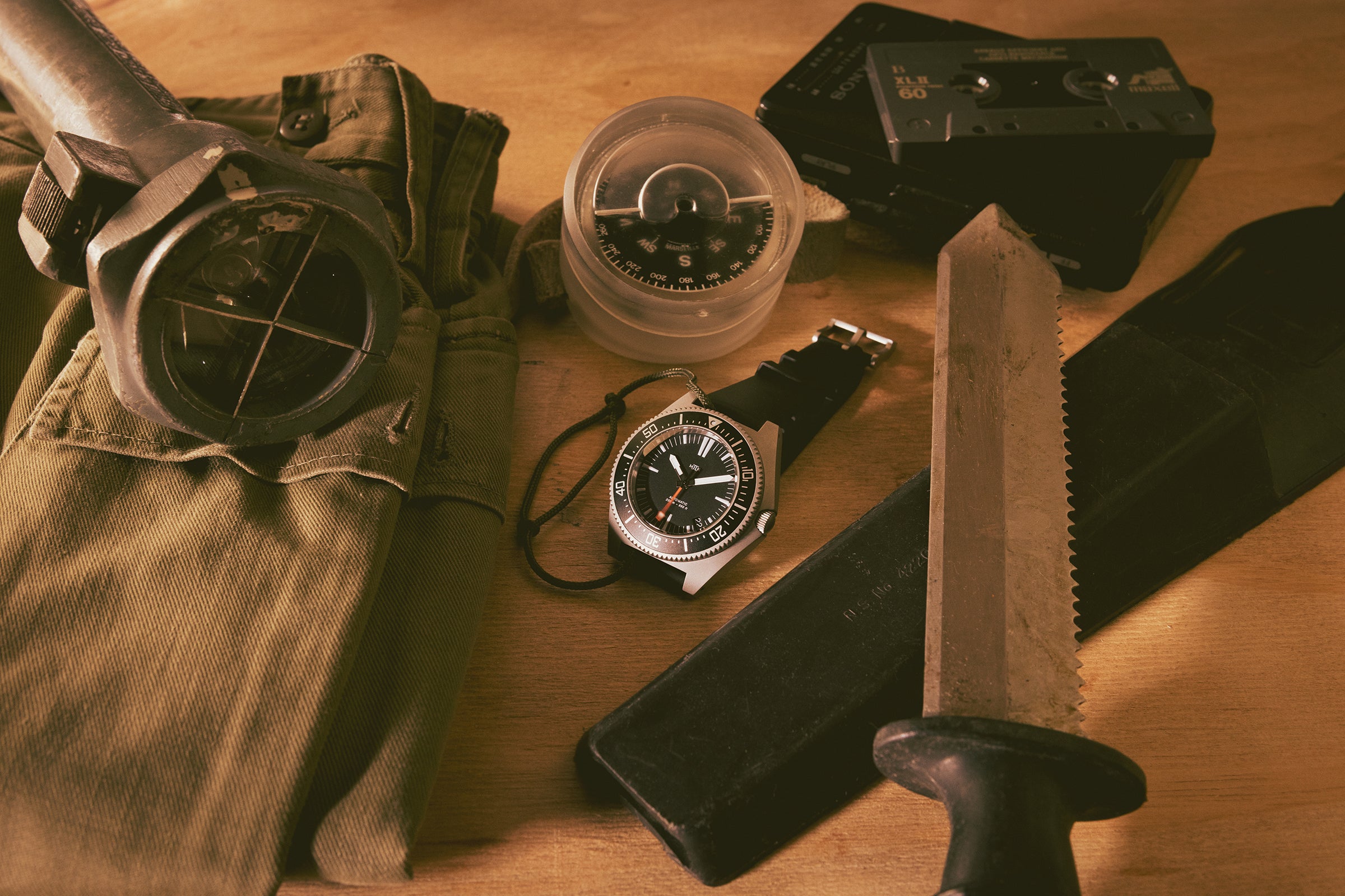 Other notable changes and improvements include the replacement of fixed bars with reinforced heavy duty 2.50 mm spring bars that meet the ISO standards for dive watches. Each unit is also supplied with a thinner set of 1.80 mm spring bars for standard straps. This watch leverages a proprietary non-radioactive luminous material. The Japanese made NE15C movement delivers a longer power reserve and comparable accuracy to the reference mil-spec.